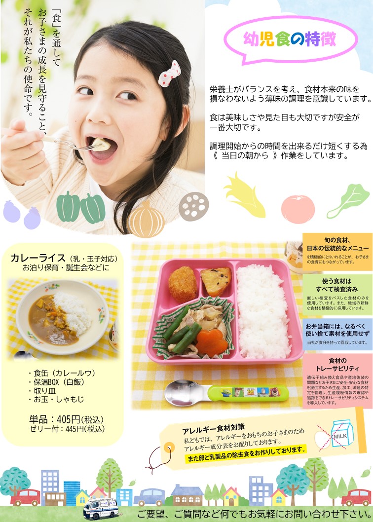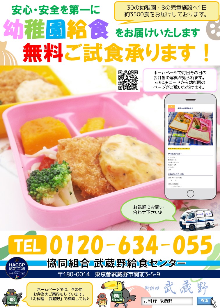 ※無料試食につきましては、お弁当給食検討中の幼稚園様向けとなっております。